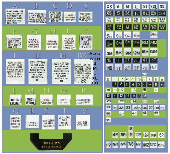 Two winners will each receive their choice of size and care labels in multiples of 10, 25, or 100 for a total of 100 labels. Here's the selection to choose from...