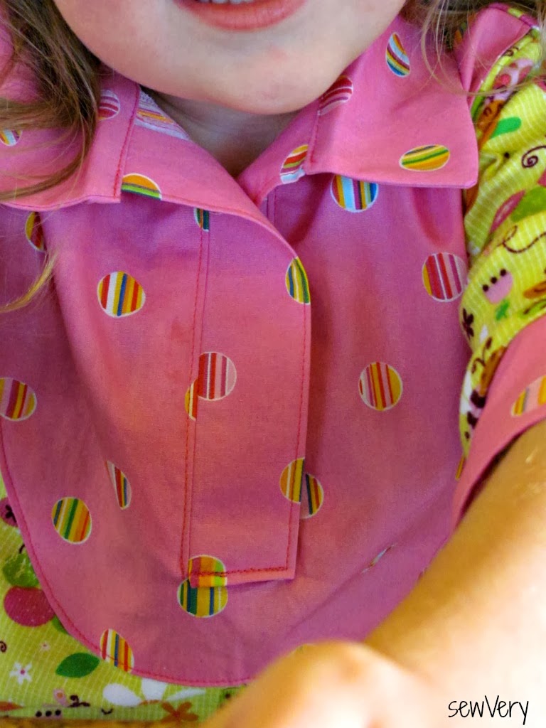 I mixed the pattern up just a tad by adding coordinating cuffs to the end of the sleeves and by omitting the buttons from the center placket. The mix of poplin cotton fabric and interfacing I used added enough body to the collar and placket that I didn't see a need to add the buttons.